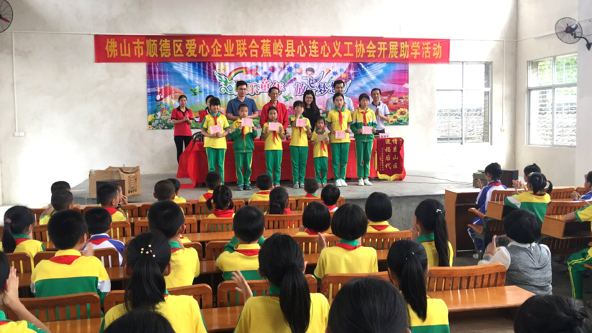 5月24日,九極公司與七家愛(ài)心企業(yè),聯(lián)合梅州市蕉嶺縣心連心義工協(xié)會(huì),對(duì)蕉嶺縣的藍(lán)坊鎮(zhèn)高思小學(xué)和長(zhǎng)潭鎮(zhèn)