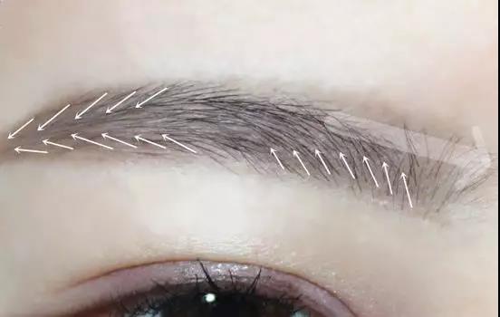 開始填色,按箭頭方向填填眉尾,眉頭靠下的部分也可以按著毛流填一下。