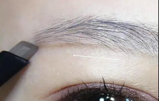 開始填色,按箭頭方向填填眉尾,眉頭靠下的部分也可以按著毛流填一下。